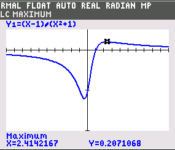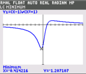 Observe that the $y$-coordinates of the curve cannot take all possible values. For example, the curve doesn't extend to $y=2$ and above. The question requires the range of values $y$ can take. For this curve, that will be between the maximum and minimum of the curve. Using the "minimum" and "maximum" solvers in our graphing calculator gives us the the coordinates of the stationary points, leading us to answer $-1.207 \leq y \leq 0.207 $.