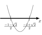 Another accepted presentation of the solution: $\left [ \displaystyle \frac{-1-\sqrt{2}}{2}, \displaystyle -\frac{-1+\sqrt{2}}{2} \right ]$.